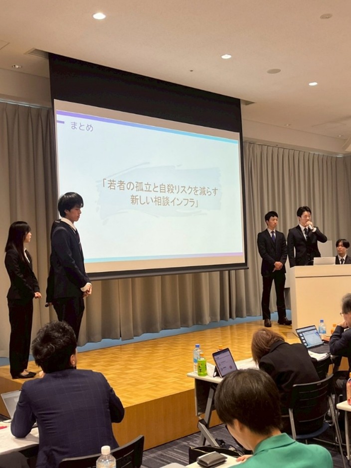 自殺や引きこもりなどの深刻な社会課題に真正面から向き合い、協働先企業である明成高橋美術の強みを活かして若者の孤立と自殺リスクを減らす新しい相談インフラを構築するビジネスモデルを提案してくれました。