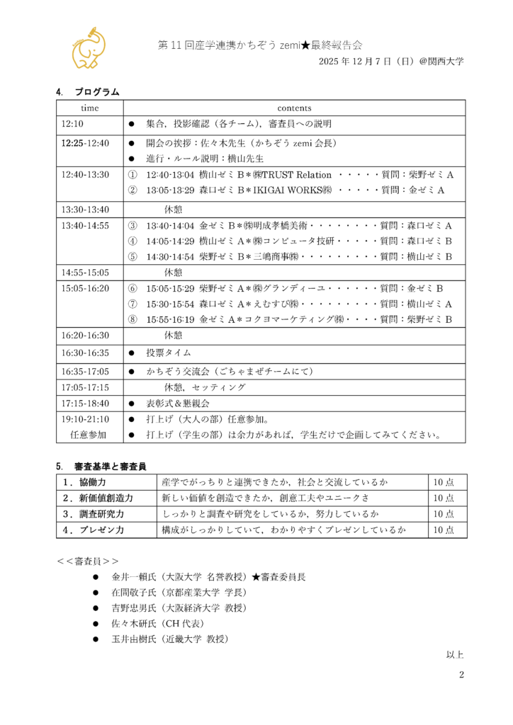 2025年12月7日(日)関西大学梅田キャンパス8階ホールを会場にして、第11回産学連携かちぞうゼミが開催されました。