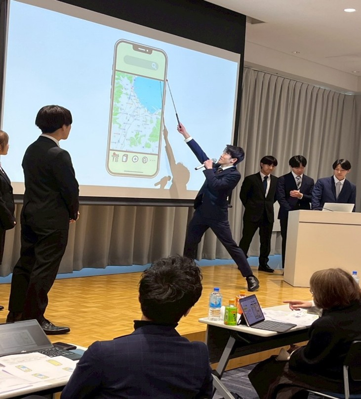 受賞にはいたりませんが、横山ゼミ×株式会社コンピュータ技研が提案した旅記録アプリ「たびーる」は、既存アプリとの差別化ができるレベルに至る可能性もあり、アクティブなプレゼンとともに印象に残る報告でした。