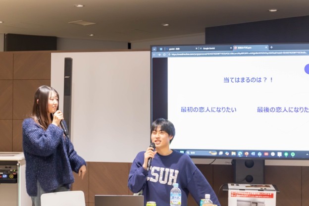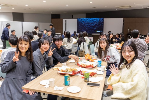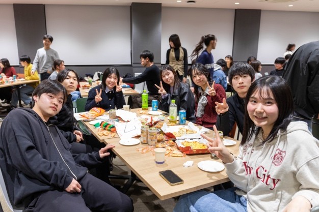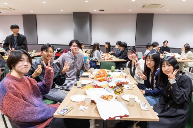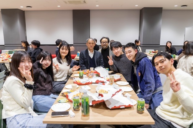 発表会終了後には、同会場にて懇親会が開催されました。懇親会は、横山先生および横山ゼミの学生が中心となって企画・運営を行い、工夫を凝らした愉しいイベントも交えながら、和やかな雰囲気の中で進められました。大学やゼミの枠を越えた学生同士・教員との交流が随所で見られ、本博覧会ならではの学びとつながりが深まる時間となりました。